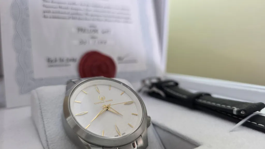 For horology enthusiasts, the included Timegraph Analysis sheet will be a welcome addition. Each movement is regulated in house, and the accompanying timegrapher sheet reflects those efforts. My Prelude tested at an impressive –3 s/day. Also included is a Certificate of Authenticity that’s as intricate and refined as a high quality banknote.